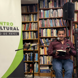 La librería Barco de Papel presentó el encuentro literario de dos autores colombo estadounidenses radicados en los Estados Unidos por varios decenios .La periodista y autora Jacqueline Donado y el poeta y traductor Miguel Falquez-Certain. Donado leyó apartes de su nuevo libro de relatos Newyorkinos y Falquez‐Certain una nueva edición de su libro Mañanayer.